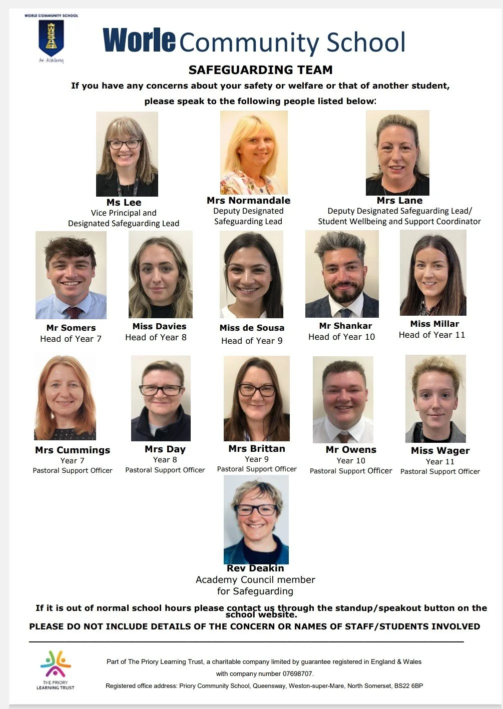 Worle Community School is committed to safeguarding and promoting the welfare of children and young people and expects all staff and volunteers to share this commitment